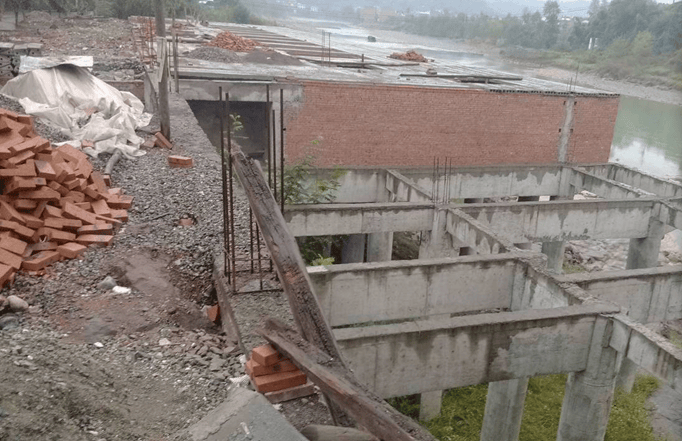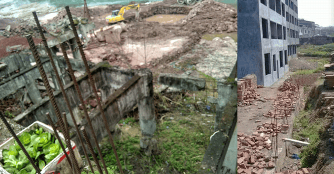 因东里街7号房屋仍然在经营铝合金等业务,二楼上除了我自己住外,还有近10个工人在上面住宿,还堆了不少的材料,楼下全是加工作坊,房屋显得拥挤不堪,儿子女儿回来没有住处。魏育海在农村老家也没有修房,就向国土所提出申请,要求在茨林村1组自家土地上建三间门面房(实际上是在别人房屋的后面),准备让子女回来后,在这里居住。蒋平同意后,魏育海刚修了一层板,就被责令停建,买来的15吨水泥、4万多元的支架管、5万多元的模板、4万多元的钢筋全部被政府“强拆”时损毁。